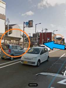 (有松方面からきた場合は道の反対側のバス停に降りますので、押しボタン信号の横断歩道を渡ってきてくださいね)