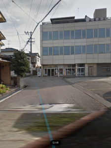 左手にあるグレーの3階建の1階部分になります。